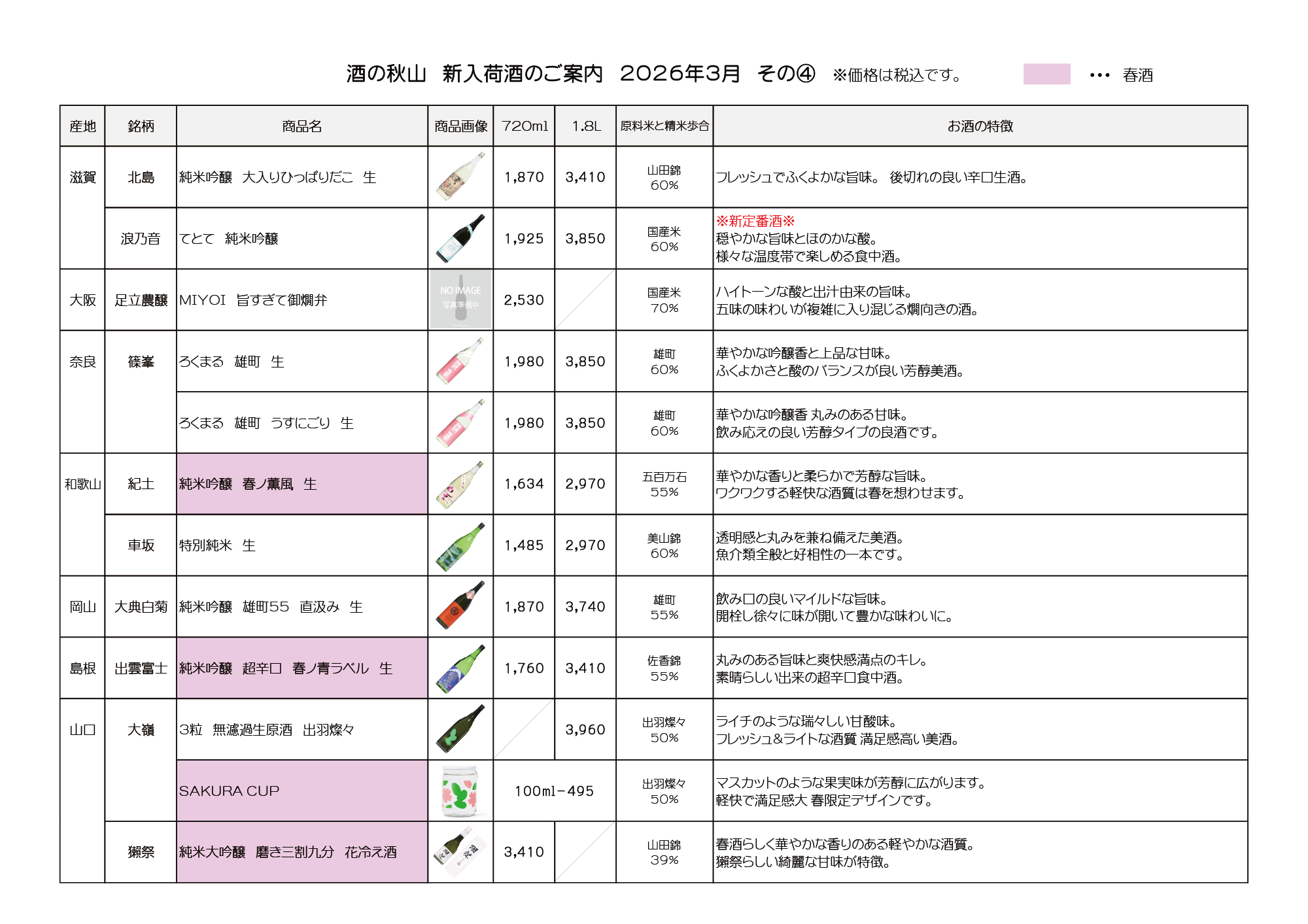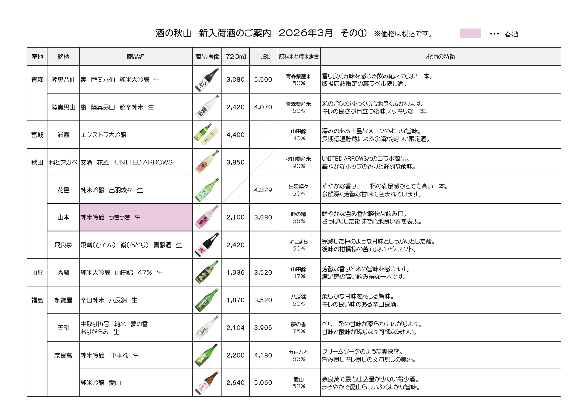 地酒 取扱銘柄